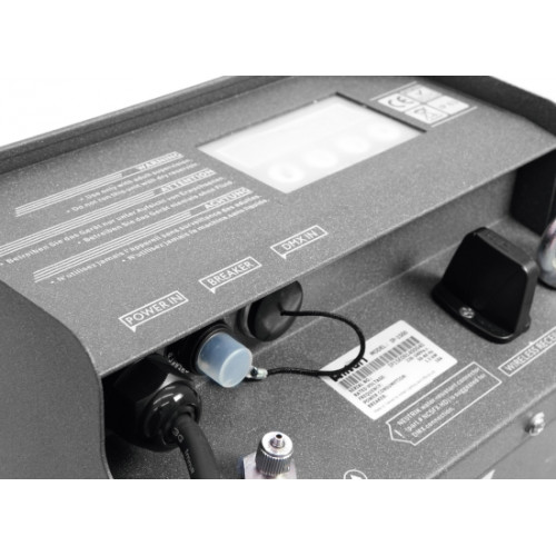 - Ausführung ohne Tank für höchste Flexibilität und maximale Anwendungsdauer: die Nebelflüssigkeit wird über den beiliegenden Schlauch von einem externen Tank (nicht inklusive) zugeführt