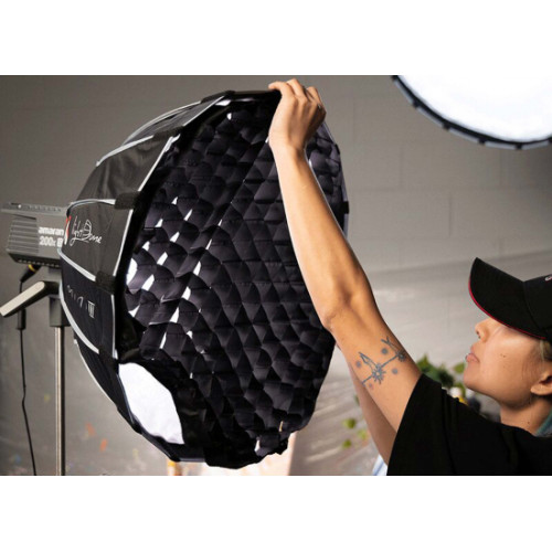 Passen Sie ihr weiches Licht mit dem mitgelieferten Diffusor und dem gold-/silberfarbenen Innenreflektor an Ihre Bedürfnisse an. Das 40° Light Control Grid erlaubt Ihnen, mehr Kontrast und Tiefe im Bild zu erzeugen. Die Softbox kreiert mit ihrem runden 32-seitigen Aufbau absolut runde und weiche Reflexionen. Dies kann ringförmige Augenlichter erzeugen oder beispielsweise Lichtquellen wie die Sonne imitieren. Zusätzlich ist der Light Dome Mini III stabiler als sein Vorgänger: Die neuen 16 Stahlstäbe sind robuster, beständiger und behalten die gewünschte Parabelform besser bei.