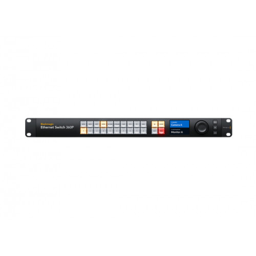 Der Blackmagic Ethernet Switch 360P ist der erste speziell für die Film- und Fernsehbranche entwickelte Ethernet-Switch. Dieser Hochleistungs-Ethernet-Switch mit geringer Latenz bietet 16 schnelle 10G-Ethernet-Ports und zwei hochschnelle 100G-Ethernet-Ports, einen QSFP-Verbinder für Highspeed-Kupferkabel oder längere Glasfaserkabel, rückwärtige Ethernet-Ports für bessere Kabelhandhabung sowie NMOS-Protokoll für Workflows mit 2110-IP-Video.