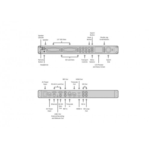 - Inbegriffene Software: Blackmagic OS, Blackmagic HyperDeck Setup, Produktsoftware-Upgrades werden beim Hochfahren oder per Blackmagic HyperDeck Setup über den USB-Port geladen
