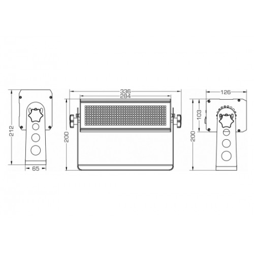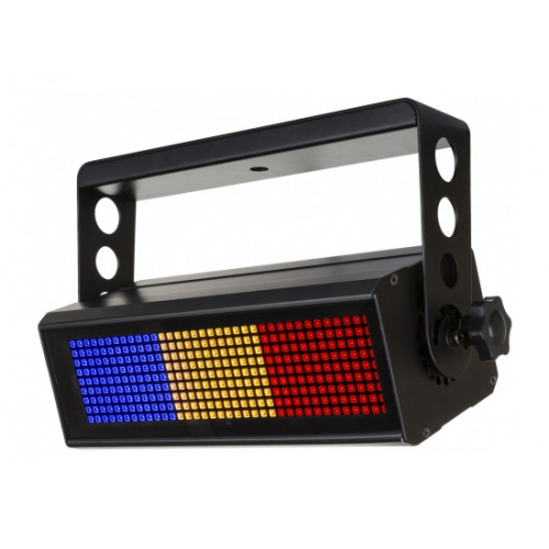 - Leistungsstarkes RGB LED-Stroboskop mit 3 getrennt steuerbaren Segmenten.