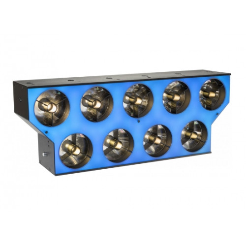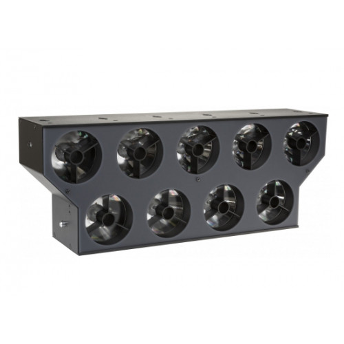 Dieser beeindruckende neue Projektor wurde für den Einsatz auf großen Konzertbühnen, TV-Studios, ... entwickelt. Die 9 großen Objektive sind jeweils mit 60W CW / WW-LEDs ausgestattet, die kräftige schmale weiße 4 ° -Strahlen erzeugen. In kürzester Zeit können mehrere Projektoren mechanisch zusammen montiert werden, um dynamische "Lichtvorhang" -Effekte mit unübertroffener Leistung zu erzeugen. Die LEDs können individuell gesteuert werden, um einstellbare weiße Strahlen zu erzeugen, die von warmem 3000 K mit hohem CRI bis zu 6000 K kaltem Weiß reichen. Sehr starke RGB-LEDs beleuchten die schwarze Frontplatte in jeder gewünschten Farbe. In der Lieferung sind 2 zusätzliche Frontplatten enthalten, die leicht ausgetauscht werden können: Die weiße Frontplatte erzeugt sehr helle und gesättigte RGB "Glow-Effekte". Die halbdurchlässige "Spiegel" -Frontplatte erzeugt erstaunliche kreative Effekte, indem sie einfach Laser und Lichtstrahlen auf sie richtet.