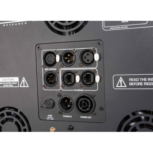 - Anschlüsse Eingang: 3 pin XLR, 5 pin XLR, artnet, RJ45, rdm, PowerCon® TRUE1 oder kompatibel