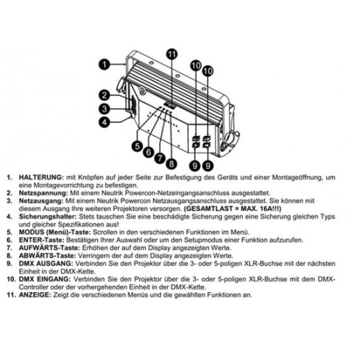 - DMX Anschluß: XLR 3pin + 5pin