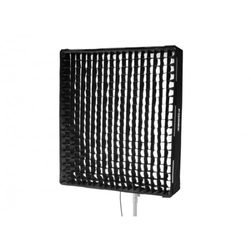 Das Softbox-Grid besteht aus 2 Teilen und einer Transport-Tasche. Mit nur wenigen Handgriffen ist es über eine Klettverbindung in die Softbox eingebaut.