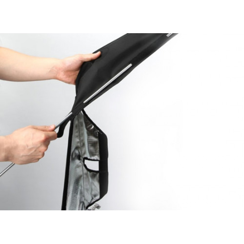 Dei Softbox besteht aus 3 Teilen und einer Transport-Tasche. Mit nur wenigen Handgriffen ist sie aufgebaut und wieder gut geschützt verpackt. Durch das kompakte Maß ist die Softbox ideal für unterwegs.