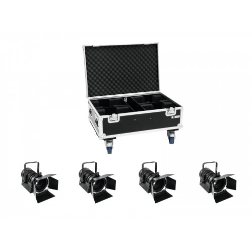 4x lüfterloser PC-Scheinwerfer inklusive PRO Flightcase mit Rollen