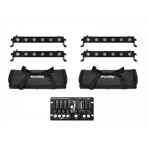 EUROLITE Set 4x LED BAR-6 QCL RGBW + 2x Soft-Bag + Controller
