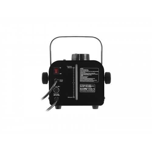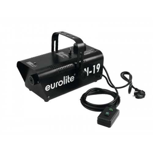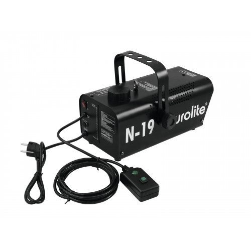 Kompakte 700-Watt-Nebelmaschine in SchwarzDie leichte und kompakte EUROLITE N-19 Nebelmaschine eignet sich bestens für kleine Partyräume. Sie ist mit einem Hängebügel, einem Thermostat und einem Überhitzungsschutzschalter ausgestattet.Die Füllstandsanzeige für das Nebelfluid zeigt Ihnen stets an, wann Sie wieder Fluid nachfüllen müssen. Die Ausstoßweite beträgt circa 2,5 Meter.Ansteuern können Sie die Nebelmaschine mit der kabelgebundenen Fernsteuerung.700 Watt starke Nebelmaschine mit Fernbedienung