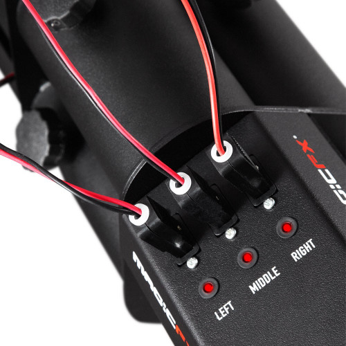 Gefüllt wird die GUN mit 3 elektrischen Shottern (40 oder 80cm) Die Shotter lassen sich einzeln oder gesamt auslösen. Mit dem Laser (Klasse 2) kann optional ein Ziel anvisiert werden, einfach die „Laser-Zieleinrichtung“ dazu schalten.