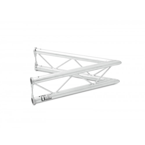 BISYSTEM 2-Punkt TraversensystemBeim BISYSTEM handelt es sich um ein 2-Punkt Traversensystem mit Druckguss-Kopfplatten, die über zwei Steckhülsen mit je zwei M8 Schrauben/Muttern verbunden werden.Die beiden Gurtrohre sind aus 50 mm Aluminiumrohr mit 2 mm Wandstärke gefertigt und geben diesem System ein hervorragendes Gewichts-Belastbarkeitsverhältnis. Die Streben haben einen Durchmesser von 12 mm bei 2 mm Wandstärke und lassen viel Spiel zum Einhängen von Couplern, Haken und Schellen.Mit Außenmaßen von 238 mm handelt es sich immer noch um ein relativ kompaktes System höherer Belastbarkeit, das die Installation nicht allzu wuchtig erscheinen lässt.Das BISYSTEM wurde primär für permanente Installationen im Dekorationsbereich für Ladenbau, Diskotheken- und Theatereinrichtungen konzipiert.Durch die Verwendung der optionalen Schnellverschlüsse lässt sich dieses System jedoch genauso gut im Messebau und in der Veranstaltungstechnik einsetzen.Alles in allem ein universell einsetzbares Traversensystem, das durch sein umfangreiches Sortiment an Standard-Systemlängen, Ecken und Zubehör zu punkten versteht.2-Punkt Traversensystem