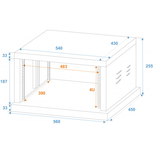 Pulverbeschichtetes Stahlrack, ideal für FestinstallationenGestanzte Rackschienen vorne und hintenIn..