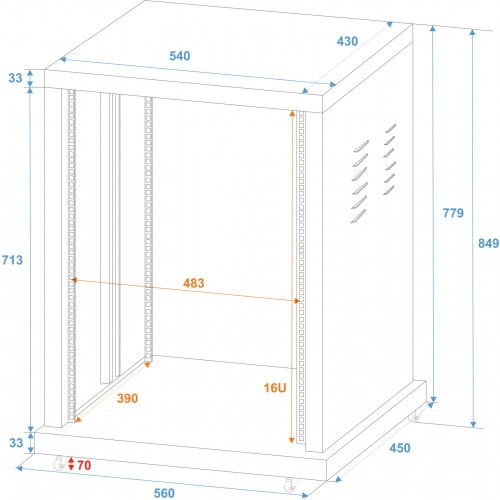 Pulverbeschichtetes Stahlrack, ideal für FestinstallationenGestanzte Rackschienen vorne und hintenIn..