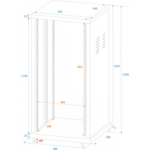 Pulverbeschichtetes Stahlrack, ideal für FestinstallationenGestanzte Rackschienen vorne und hintenIn..
