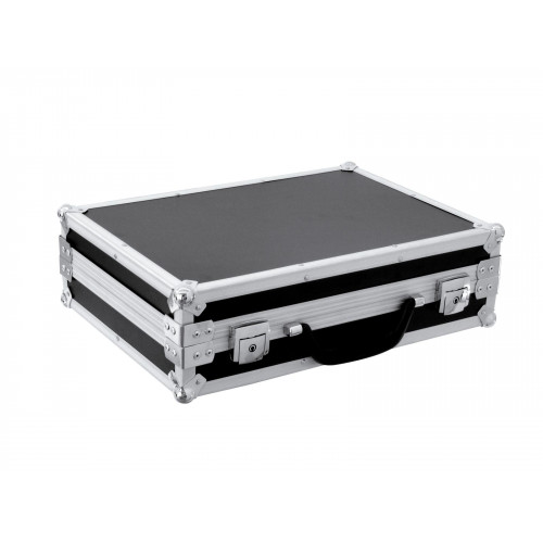Flightcase für einen Laptop mit 15"Mit dem ROADINGER Laptop-Case ist Ihr 15" -Laptop immer bestens geschützt. Das Hauptfach ist für einen Laptop mit maximal 370 x 255 x 30 mm konzipiert. Die im Deckel integrierte Zubehörtasche eignet sich für externe Festplatten oder Netzteile und Kabel. Die hochwertige Verarbeitung mit 4 Millimeter dickem, mehrschichtig verleimtem Holz und dem robusten Tragegriff sorgt dafür, dass Ihr Laptop gut geschützt ist. Für die nötige Stabilität sorgt der Aluminiumprofilrahmen sowie die dreischenkligen, kleinen Stahlkugelecken. Die zwei abschließbaren Schnappschlösser sichern Ihren Laptop noch zusätzlich vor unautorisiertem Zugriff.Koffer-Case