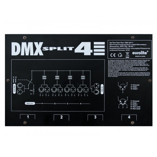 - DMX-Verteiler für die Aufteilung eines DMX-Eingangssignals auf 4 DMX-Ausgänge