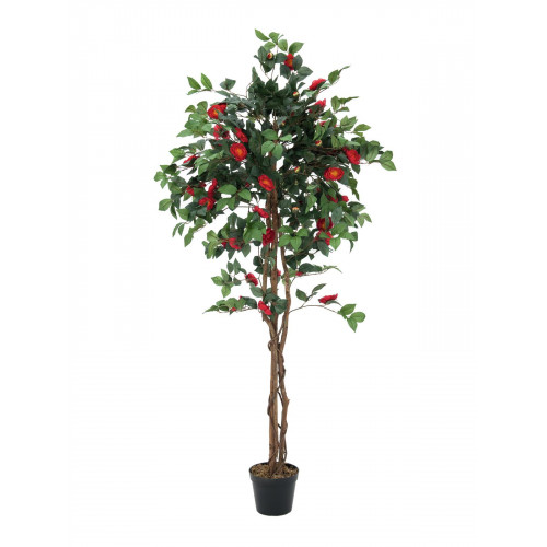 EUROPALMS Kamelienbaum rot mit Topf, Kunstpflanze, 180cm