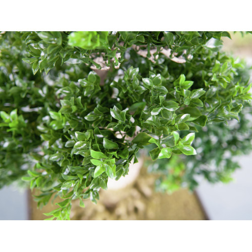 Buchsbonsai für Wohnung und BüroMit dem künstlichen Buchsbonsai begrünen Sie Ihr Zuhause oder Büro ohne großen Aufwand.Der kleine Buchsbaum im Bonsaistil steht in einer dekorativen Schale, deren Boden mit Moos bedeckt ist. Die Pflanze ist 61 cm hoch und mit 538 kleinen Blättern verziert, die den Buchsbaum wie eine echte Zimmerpflanze aussehen lassen.Setzen Sie den kleinen Buchbonsai vielfältig zu Hause, in Ihrem Büro oder im Schaufenster zur Dekoration ein. Der künstliche Baum bietet Ihnen ganzjährig frisches, gepflegtes Grün.Bonsai-Buchsbäumchen als Tischdeko