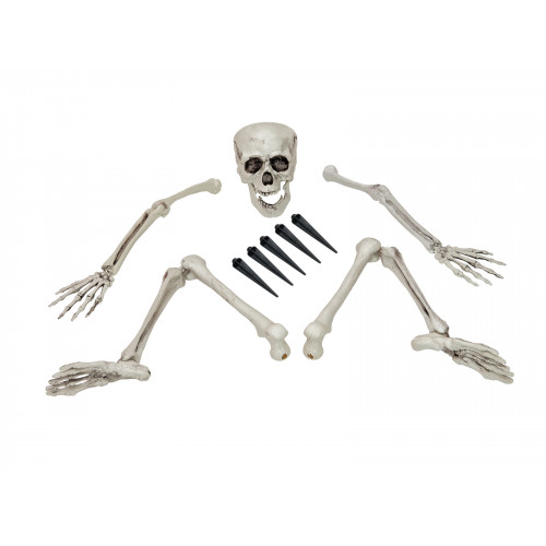 Nicht nur zu Halloween: Ob als Hängefigur, sitzend oder liegend - das klapprige Skelett von Europalm..