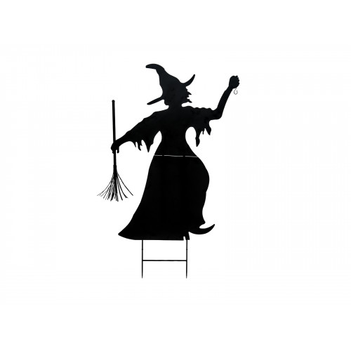 Sie planen eine Motto- oder Halloween-Party und suchen noch nach einem passenden Highlight für die entsprechend schaurige Atmosphäre? Mit den Metall-Silhouetten von Europalms setzen Sie Akzente oder gestalten eine komplette Grusel-Szenerie, die Ihre Gäste begeistern wird.Der 150 cm große Schattenriss scheint sich direkt auf Ihre Besucher zuzubewegen.Optisch entspricht er genau einer Hexe wie sie im Buche steht. Große spitze Nase, gebogenes Kinn, großer Hexenhut und spitze Schuhe - kein Detail wurde vergessen.In der rechten Hand hält sie ihren Reisigbesen fest umklammert, während sie die linkeHand Ihren Besuchern entgegen streckt. Ein an der Hand angebrachter Haken dient zur Befestigung von weiteren Dekorationselementen, wie zum Beispiel einer Laterne.Die zweiteilige Silhouette lässt sich mit wenigen einfachen Handgriffen stabil zusammen schrauben. Im Lieferumfang sind ca. 11 cm lange Erdspieße aus Metall enthalten, die sich leichthändig anbringen lassen. Somit steht auch einem Außeneinsatz in Ihrem Garten oder Vorgarten nichts im Wege.Hexensilhouette als Blickfang im Garten