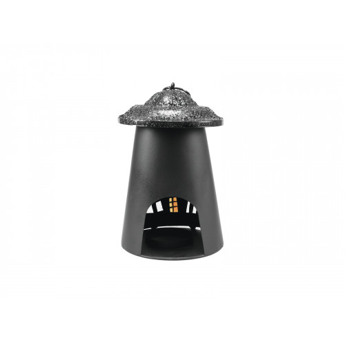 Durch ein in Echtglas eingearbeitetes Geisterhaus-Motiv ist die Metall-Laterne von Europalms ein echter Blickfang. Ihr flackerndes Kerzenlicht taucht die Umgebung in teuflisches Licht und schafft eine ganz eigene Stimmung.Zur Sicherheit befindet sich im Inneren der Laterne ein Teelichthalter aus Metall in den auch ein großes Teelicht eingelegt werden kann. Eine Öffnung auf der Rückseite ermöglicht einen einfachen und schnellen Kerzenwechsel.Die Geisterhaus-Laterne eignet sich auch für den Außenbereich und ist die ideale Ergänzung zu unseren Metall-Silhouetten oder Ihrer Themendekoration.Laterne mit Geisterhaus