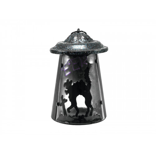 Durch ein in Echtglas eingearbeitetes Geisterhaus-Motiv ist die Metall-Laterne von Europalms ein ech..
