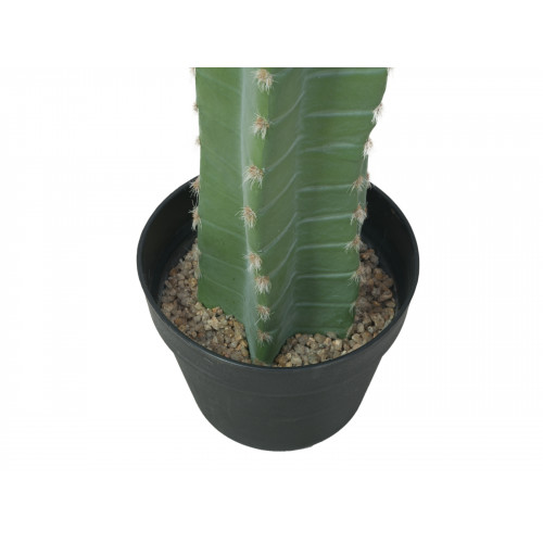 Die schmale Kakteen-Säule von Europalms ist eine gute Alternative, wenn Sie nur wenig Platz zur Verfügung haben. Der Deko-Kaktus ist aus hochwertigem Kunststoff gearbeitet und lässt kaum einen Unterschied zu seinem natürlichen Vorbild erkennen. Die Stacheln oder Dornen sind aus weichem Material und somit eine ungefährliche Alternative zur Original-Pflanze.Ob als Einzelpflanze oder Ergänzung eines bereits bestehenden Arrangements findet er seinen Einsatz. Gestalten Sie ganz nach Ihren eigenen Ideen und Wünschen eine Wüstenlandschaft oder Ihren Deko-Blickfang im Wellnessbereich, Ihrem Restaurant oder in Ihren Räumlichkeiten zu Hause.Im Lieferumfang ist ein mit kleinen Steinen bedeckter Basis-Gärtnertopf enthalten, welcher der Pflanze einen stabilen Stand beim Einstellen in einen Übertopf gibt.Säulenkaktus aus hochwertigem Kunststoff