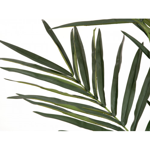 Setzen Sie mit der künstlichen Kentia Palme von Europalms gezielt sommerliche Akzente.Mit ihrer Größe bildet sie als grüner Farbtupfer ein auffälliges Dekorationselement in Ihren Räumlichkeiten.Unterstützt wird das naturgetreue Erscheinungsbild der Kunstpalme durch den Einsatz von Naturmaterialen im Stammbereich. Die Blätter der biegsamen Palmwedel sind aus Textilmaterial gefertigt und müssen beim Aufbau der Pflanze nur noch in unterschiedlich hoch angebrachte Vorrichtungen eingesteckt werden.Die Palme ist wird in einem schlichten Gärtnertopf geliefert und erreicht vom Topf bis zu den Palmwedelspitzen eine Gesamthöhe von ca. 300 cm.Tolle Deko in Wohn- und Geschäftsräumen