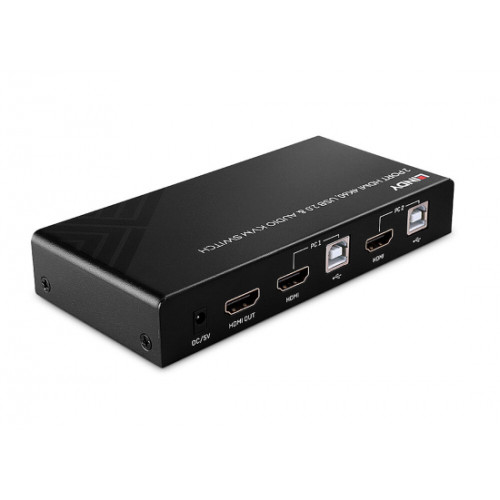 Der 2 Port HDMI 4K60, USB 2.0 & Audio KVM Switch bietet eine kompakte Lösung für den Zugriff und die Steuerung von bis zu vier mit HDMI ausgestatteten PCs über eine einzige Tastatur, Maus und einen Monitor.