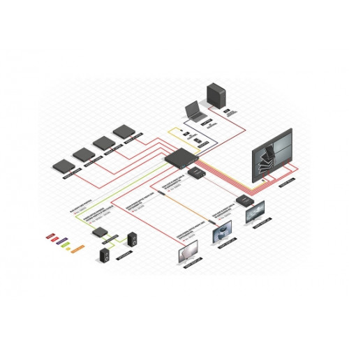 - Spezielle Eigenschaften: Unterbrechungsfreies Umschalten, Erstellung einer Video Wall, Unabhängige Audioextraktion, Unabhängige IR Matrix, Skalieren der Ausgangsauflösung