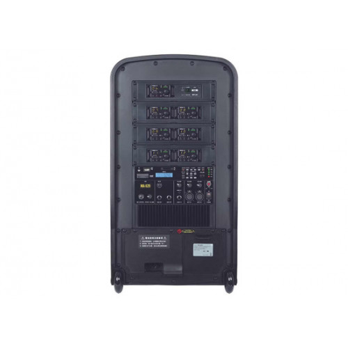 Die MA-929 ist das weltweit leistungsfähigste aktive Beschallungssystem, das mit Akkus betrieben werden kann. Du profitierst von der Verwendung von 2 Tieftönern und einem Hochtöner in der sogenannten MTM-Anordnung, die höchste Klangtreue und sehr hohe Lautstärken erzielt. Die beiden Tieftöner werden jeweils separat über einen Class D Leistungsverstärker angesteuert. Für den Hochtöner wird eine Class AB Leistungsendstufe verwendet. Der integrierte DSP Audiocontroller steuert die Lautstärke und Klangfarbe (EQ) und bietet Reverb (Hall) und Delay als zusätzliche Funktionen an.