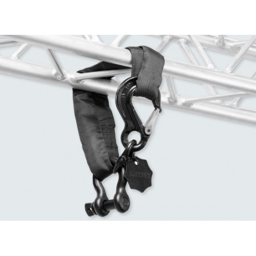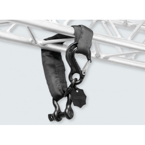 - Lasthaken, Schäkel und Universalverbinder schwarz eloxiert.