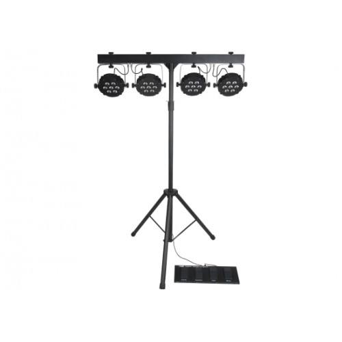 Mit dem Compact Power Lightset erhalten Sie ein komplettes Lichtset inklusive aller Accesoiries in einem Paket. Es wird mit 4 leistungsstarken und kompakten LED Spots geliefert. Jeder Spot enthält 7 3-in-1 RGB LEDs, um einen hohen Lichtoutput zu entwickeln. Die Spots sind an der T-Bar angebracht, die über einen eingebauten Controller verfügt sowie ein Powerpack. Die T-Bar kann entweder über den mitgelieferten Fußschalter oder über DMX gesteuert werden. Im Lieferumfang enthalten sind: Tragetasche, Stativ und Fußschalter, so dass das Lichtset sofort einsatzbereit ist.