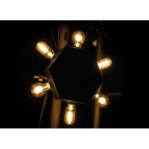 Der Showtec Star E6 bietet Platz für sechs in einem Sechseck angeordnete E27 Lampen. Der Edison Bar E6 wiederum ist eine Retro-Lichtleiste. Der Showtec Dot E1 ist der kleinste der drei Scheinwerfer und bietet Platz für eine E27 Lampe. Durch seine kompakte Größe können Sie ihn fast überall platzieren. Wenn Sie mehrere Geräte am Laufsteg entlang installieren oder im Hintergrund der Bühne verteilen, entsteht eine elegante, gehobene Atmosphäre. Showtec bietet ein großes Sortiment an E27 LED-Glühlampen, die in Kombination mit den Edison Scheinwerfern jeder Veranstaltung das gewisse Etwas und ein nostalgisches Flair verleihen.