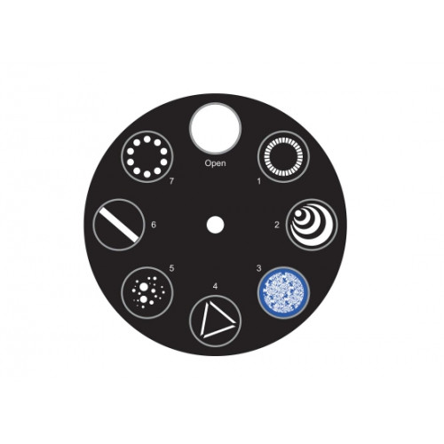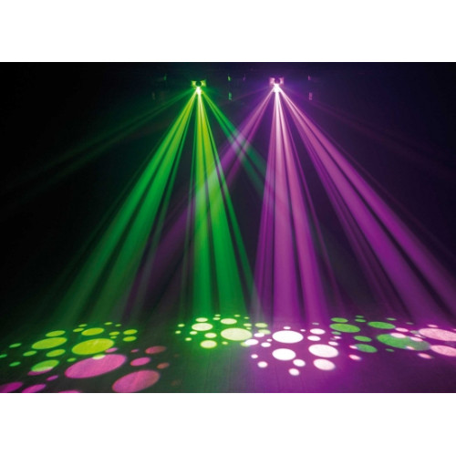 - Rotierendes Gobo: 7 Gobos + offen, Rotation, Gobo-Shake, Gobo-Fließeffekt, Scrollen