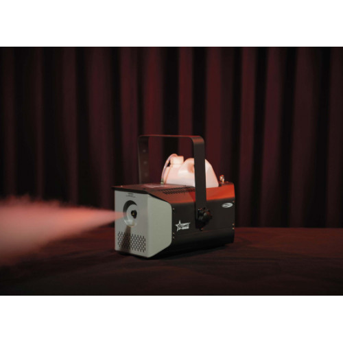 Die Stellar F-1000 ist eine kompakte Nebelmaschine im robusten, modernen Design. Dank des Heizelements mit einer Leistungsaufnahme von 1000 Watt kann sie schon 3 Minuten nach dem Einschalten Nebel produzieren. Das gut lesbare LCD-Display erleichtert die manuelle Steuerung. Es gibt aber auch andere Steueroptionen - DMX und eine Fernbedienung. Für optimale Ergebnisse empfehlen wir die Showgear Nebelflüssigkeit.