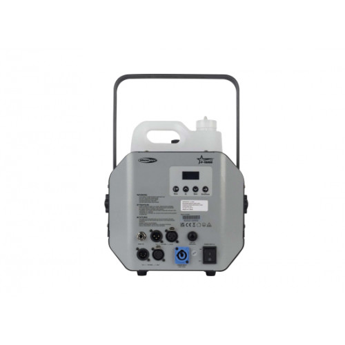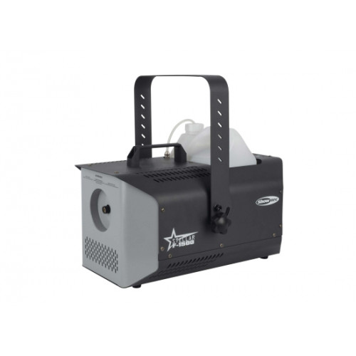 Die Stellar F-1500 ist eine kompakte Nebelmaschine im robusten, modernen Design. Dank des Heizelements mit einer Leistungsaufnahme von 1500 Watt kann sie schon wenige Minuten nach dem Einschalten kontinuierlich und gleichmäßig Nebel produzieren. Die Steuerung kann mithilfe des gut lesbaren LCD-Displays manuell erfolgen, aber auch über DMX oder eine optionale Fernbedienung. Für optimale Ergebnisse empfehlen wir die Showgear Nebelflüssigkeit.