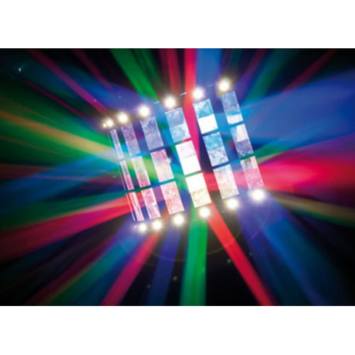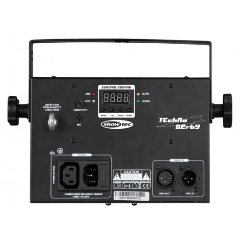 Der Showtec Techno Derby ist ein 2-in-1-Effektstrahler mit 16 leistungsstarken weißen Blitz-LEDs und einem RGBW-LED-Lichteffekt mit einer Leistung von 4x3 Watt. Beide Effekte können separat im automatischen oder musikgetakteten Modus abgespielt werden. Er kann auch über DMX angesteuert und somit vollständig kontrolliert werden. Das Stroboskop besteht aus 16 Sektionen mit unterschiedlichen vorprogrammierten Mustern. Alle RGBW-Farben können einzeln oder in zahlreichen vorprogrammierten Kombinationen angesteuert werden. Mit mehreren Techno Derbys können Sie im Master/Slave-Modus eine synchronisierte Lichtshow erstellen.