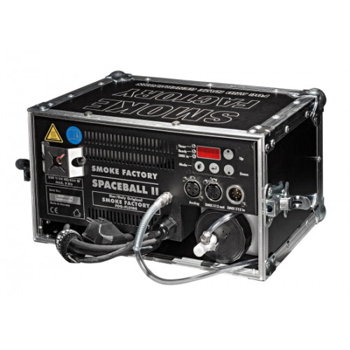 High Tech in a little box. Die Smoke Factory Spaceball II Nebelmaschine ist ideal für kleine und mittlere Jobs, Dry Hire, Party, Top 40, mobil-DJ. Klein und kompakt ist die Smoke Factory Spaceball II Nebelmaschine, aber dennoch randvoll mit aktueller Technik: DMX, Mikroprozessor, Timer, Digitaldisplay. Das Gerät besticht durch seinen niedrigen Strom- und Fluidverbrauch, was sich in niedrigen Betriebs- und Energiekosten widerspiegelt. Guter Output bei geringer Leistungsaufnahme und das Flightcase der Smoke Factory Spaceball II Nebelmaschine ist serienmäßig.