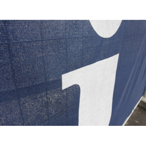 - Farbe: Weiße Schrift auf blauem Grundmaterial