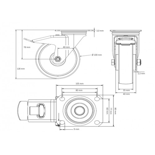 - Gehäuse-Lenkrolle mit Totalfeststeller