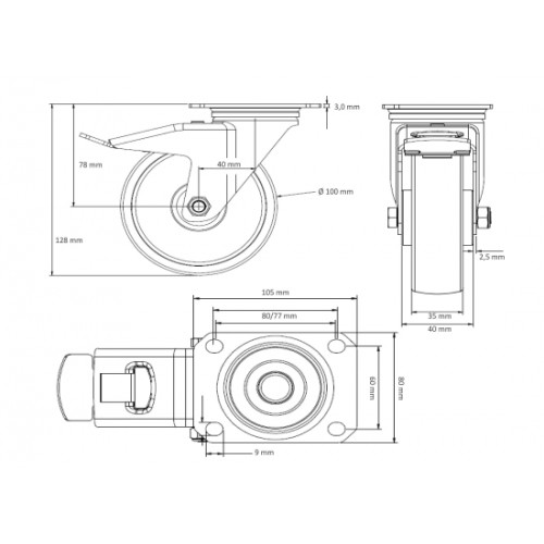 - Gehäuse-Lenkrolle mit Totalfeststeller