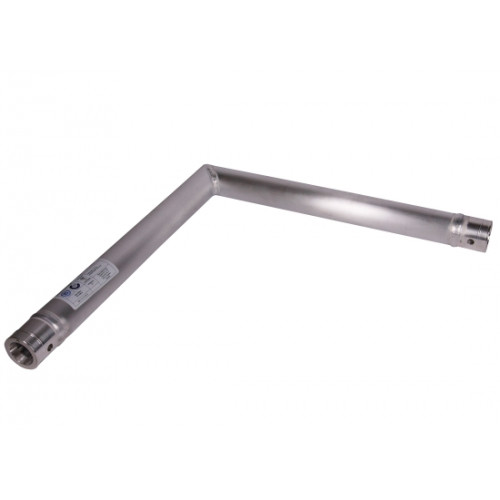 Sweettruss KV1/050-C21 Winkel, gefertigt aus 50 x 2 mm Tragrohr. Der 1-Punkt Aluminium-Winkel findet aufgrund seiner leichten und optisch ansprechenden Bauweise Verwendung auf kleinen Bühnen, sowie im Werbe- und Architekturbereich. Die Winkel werden über konische Verbindungselemente und Kegelstifte mit den Traversen verbunden.