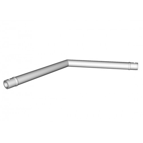 Sweettruss KV1/050-C22 Winkel, gefertigt aus 50 x 2 mm Tragrohr. Der 1-Punkt Aluminium-Winkel findet aufgrund seiner leichten und optisch ansprechenden Bauweise Verwendung auf kleinen Bühnen, sowie im Werbe- und Architekturbereich. Die Winkel werden über konische Verbindungselemente und Kegelstifte mit den Traversen verbunden.