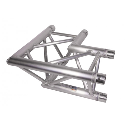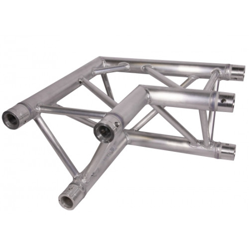 Der 3-Punkt Aluminium-Winkel findet aufgrund seiner leichten und optisch ansprechenden Bauweise Verwendung auf kleinen Bühnen, sowie im Werbe- und Architekturbereich. Die Winkel werden über konische Verbindungselemente und Kegelstifte mit den Traversen verbunden.