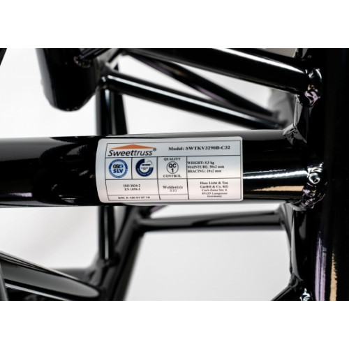 Sweettruss KV3/290B 3-Punkt Eckstück, gefertigt aus 50x2 mm Tragrohr und 20x2mm Füllstäben.