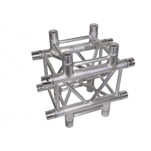 Das 4-Punkt Aluminium-Kreuz findet aufgrund seiner leichten und optisch ansprechenden Bauweise Verwendung auf kleinen Bühnen, sowie im Werbe- und Architekturbereich. Die Kreuze werden über konische Verbindungselemente und Kegelstifte mit den Traversen verbunden.