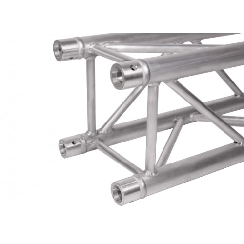 Die 4-Punkt Aluminiumtraverse findet aufgrund ihrer hohen Tragfähigkeit und leichten Bauweise Verwendung auf kleinen Bühnen, sowie im Werbe- und Architekturbereich. Die Traversen werden über konische Verbindungselemente mit Kegelstiften untereinander verbunden.