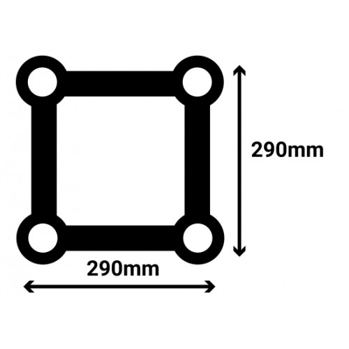 Der 4-Punkt Aluminium-Winkel findet aufgrund seiner leichten und optisch ansprechenden Bauweise Verwendung auf kleinen Bühnen, sowie im Werbe- und Architekturbereich. Die Winkel werden über konische Verbindungselemente und Kegelstifte mit den Traversen verbunden.