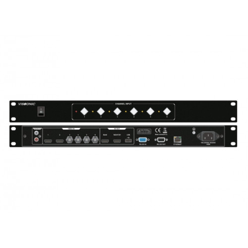 - Integrierter 6 x 1+1 unterbrechungsfreier Doppel-Switch für eine maximale Auflösung von 1080 Pixel bei 60 Hz.